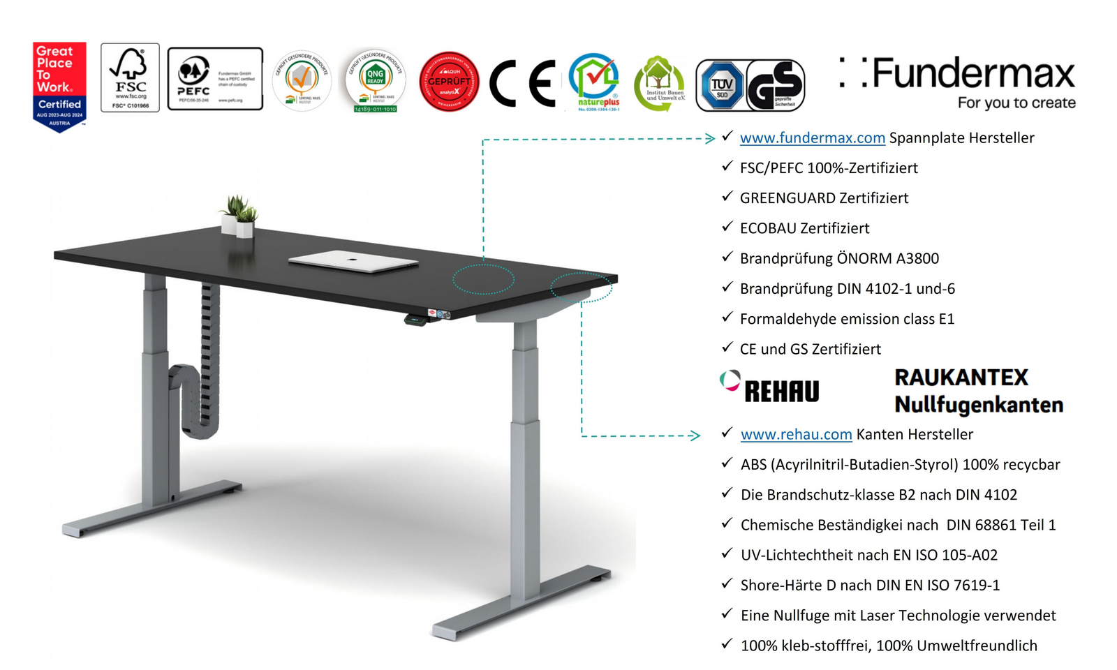 ✓ FSC/PEFC-Tischplatten (schmutzabweisend und sehr robust, z.B. kratz +schlagfest)